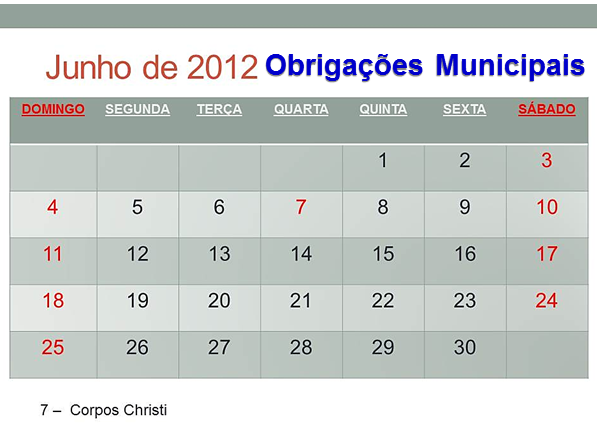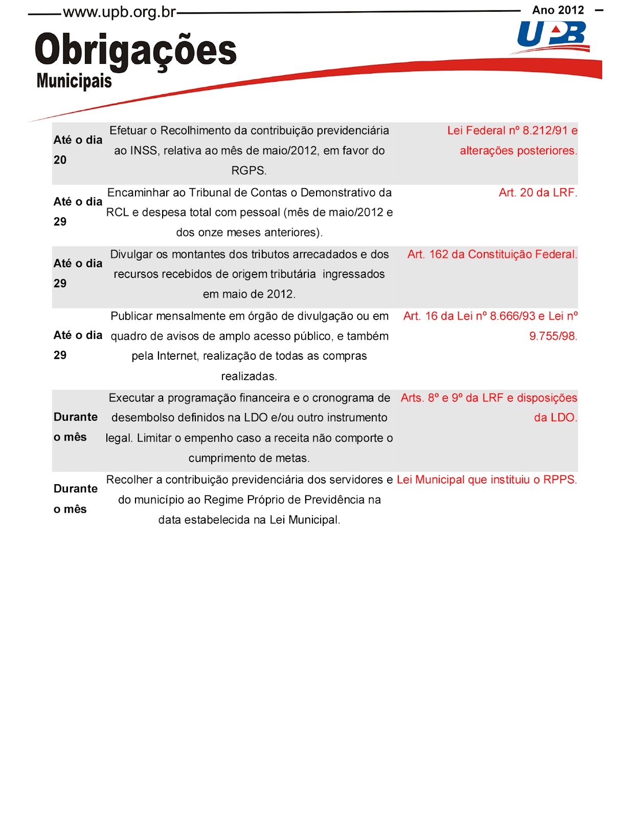 Obrigações municipais para junho de 2012 União dos Municipios da Bahia – UPB divulga calendário de obrigações municipais para o mês de junho de 2012. admin2012-06-08T13:23:00+00:0008/06/12|Categories: Notícias| COMPARTILHE FacebookTwitterLinkedInE-mail